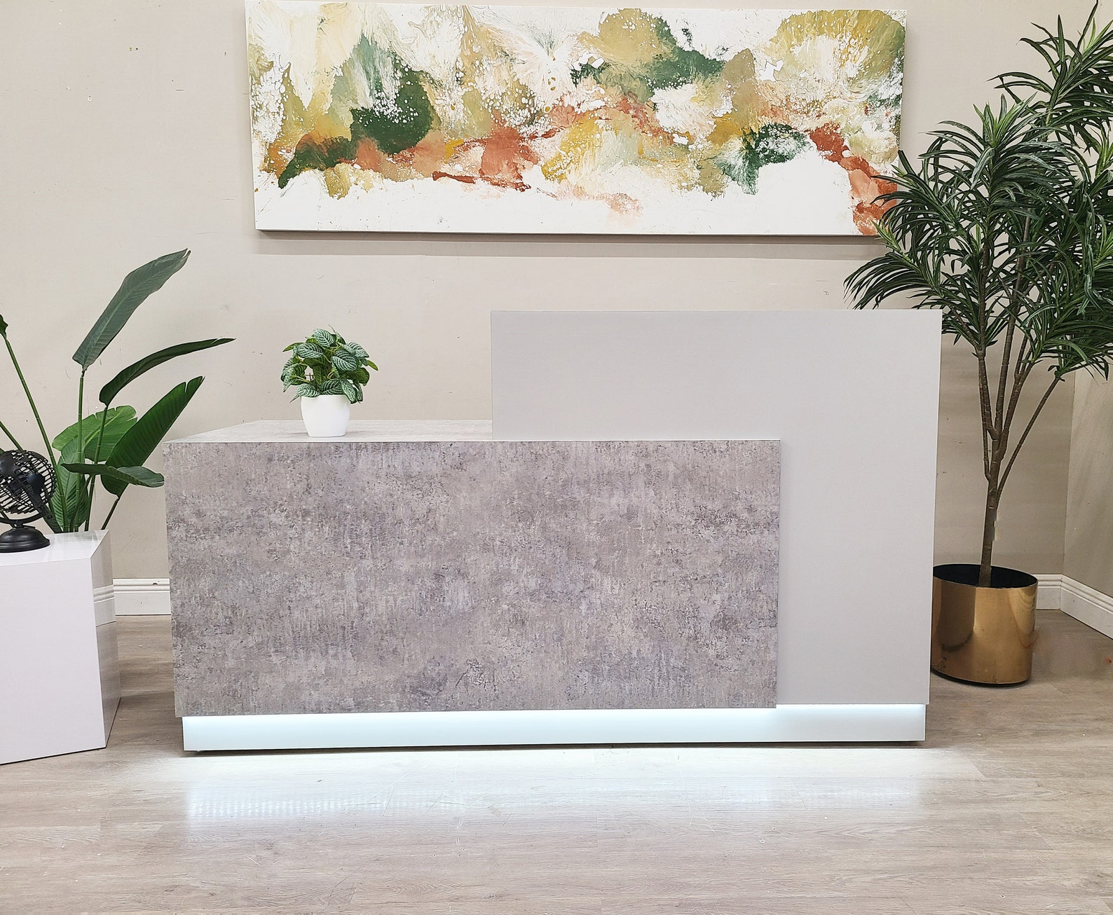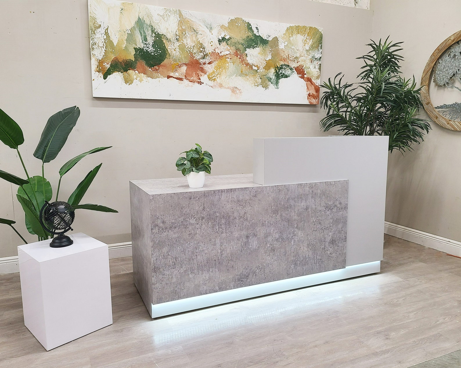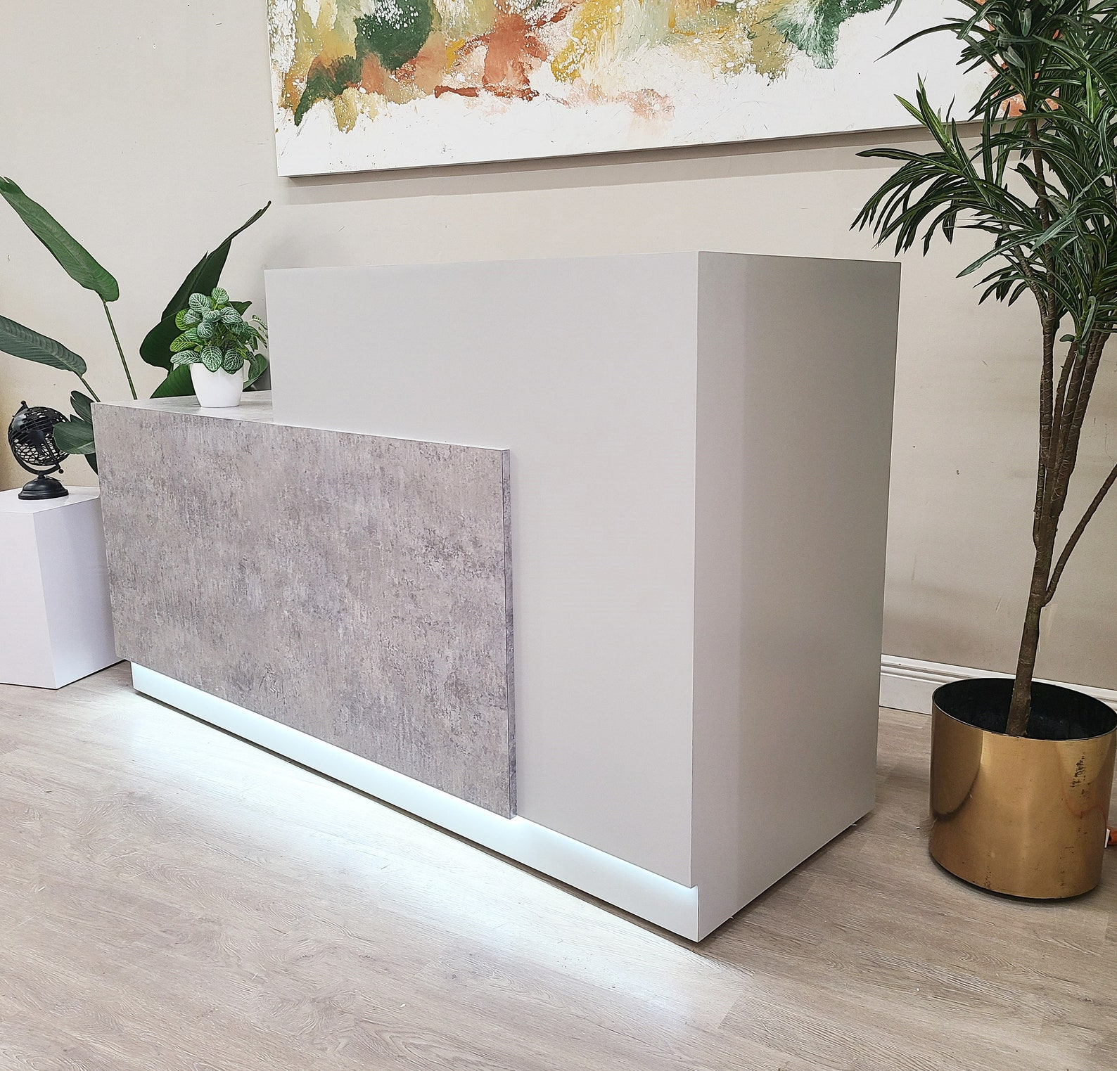 Jade Plus Reception desk (Elemental Concrete + Matte White)