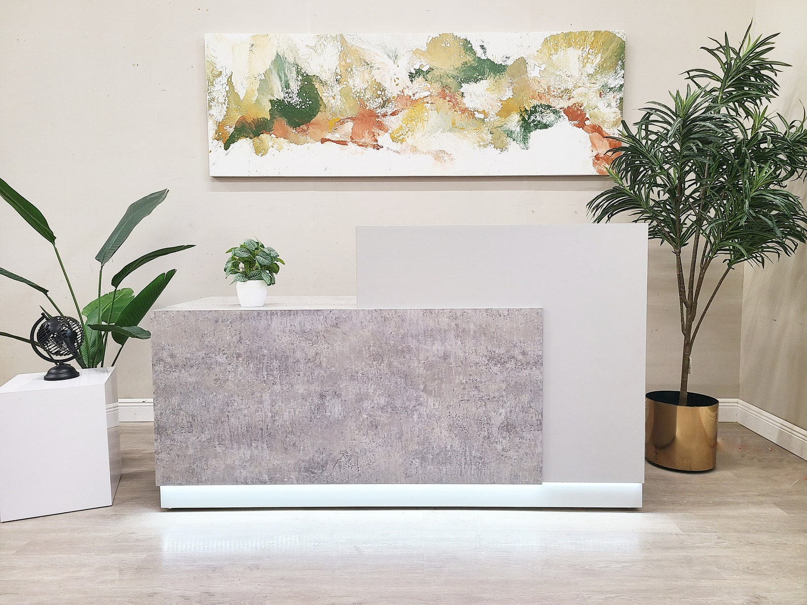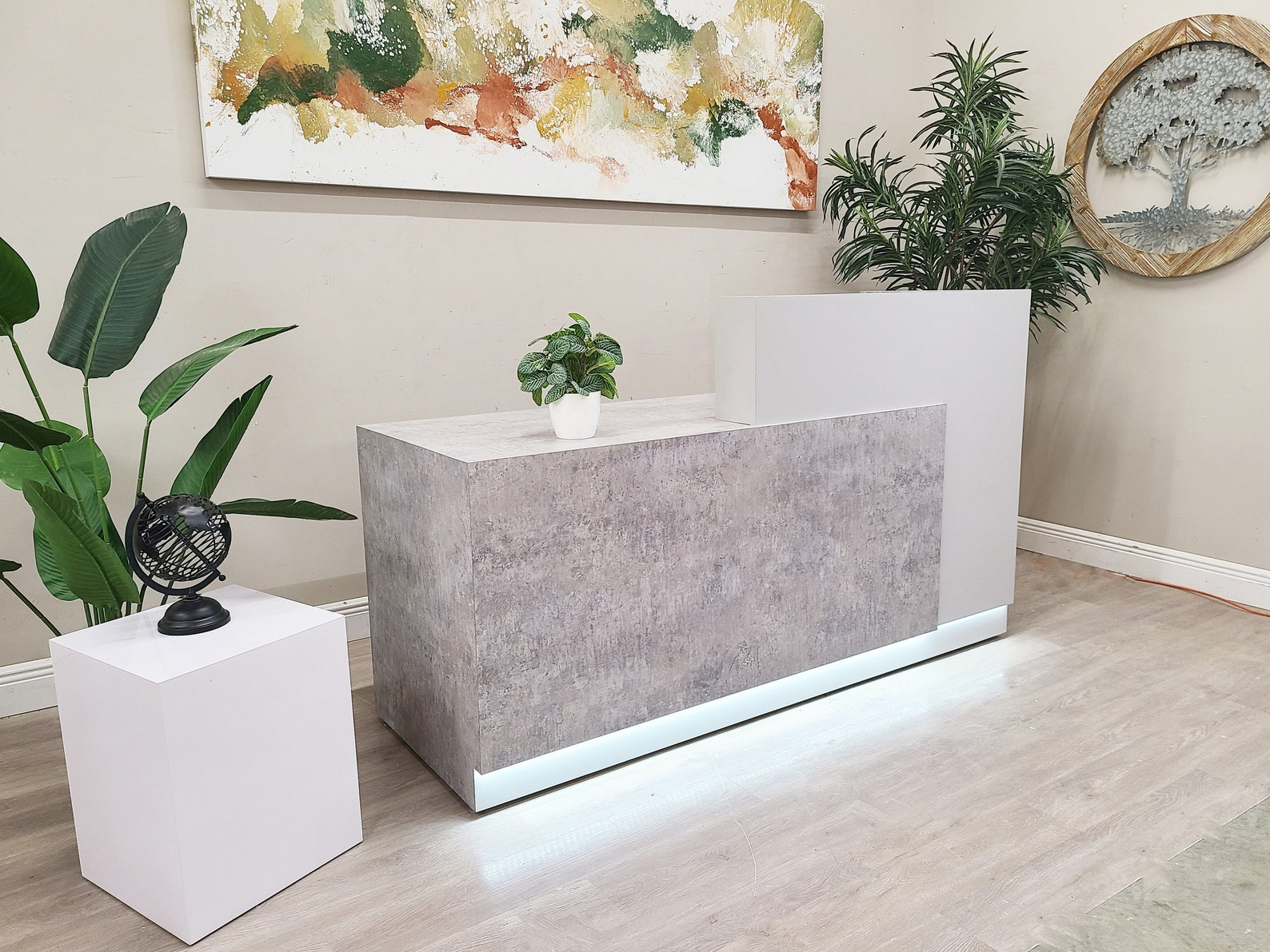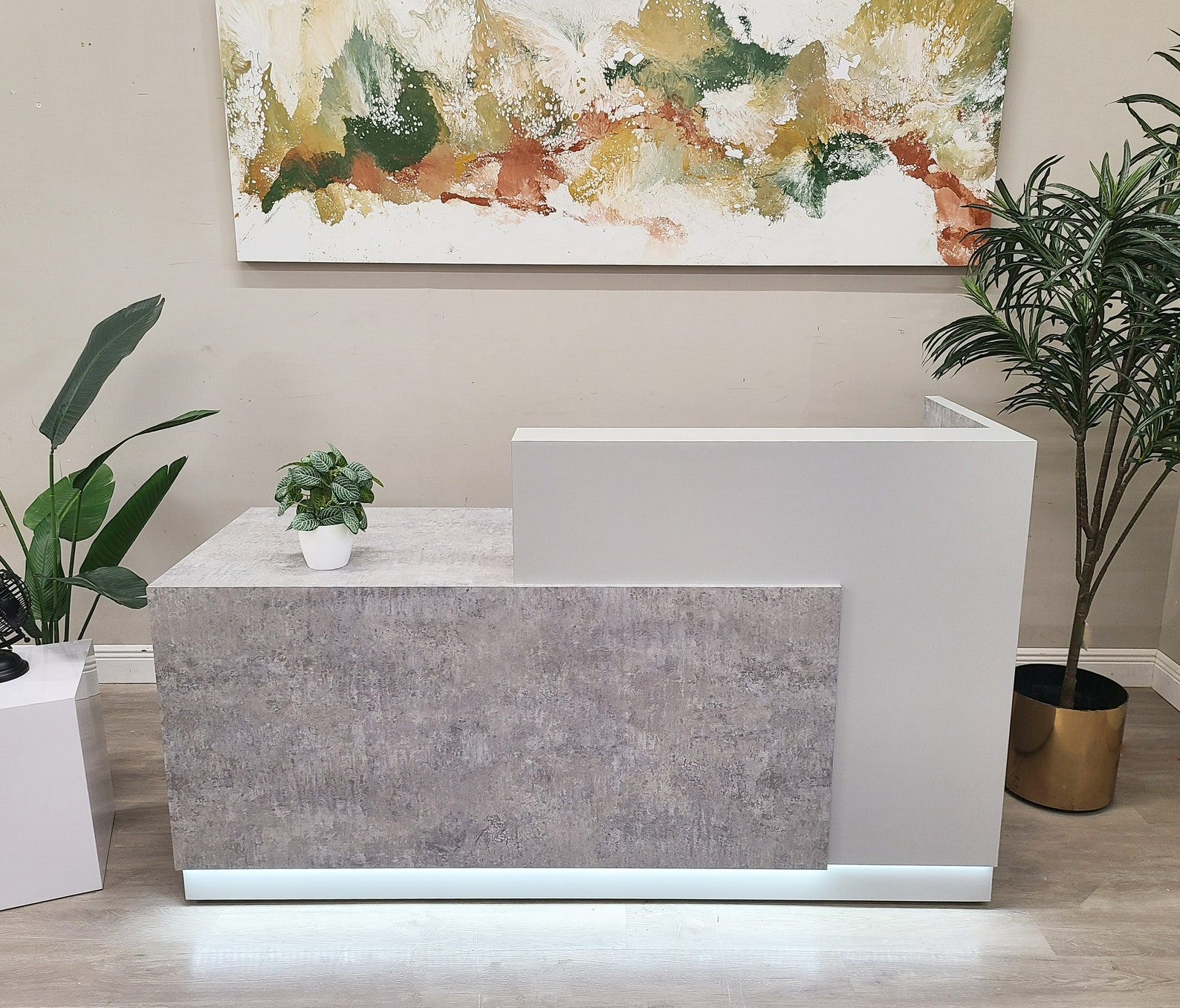 Jade Plus Reception desk (Elemental Concrete + Matte White)