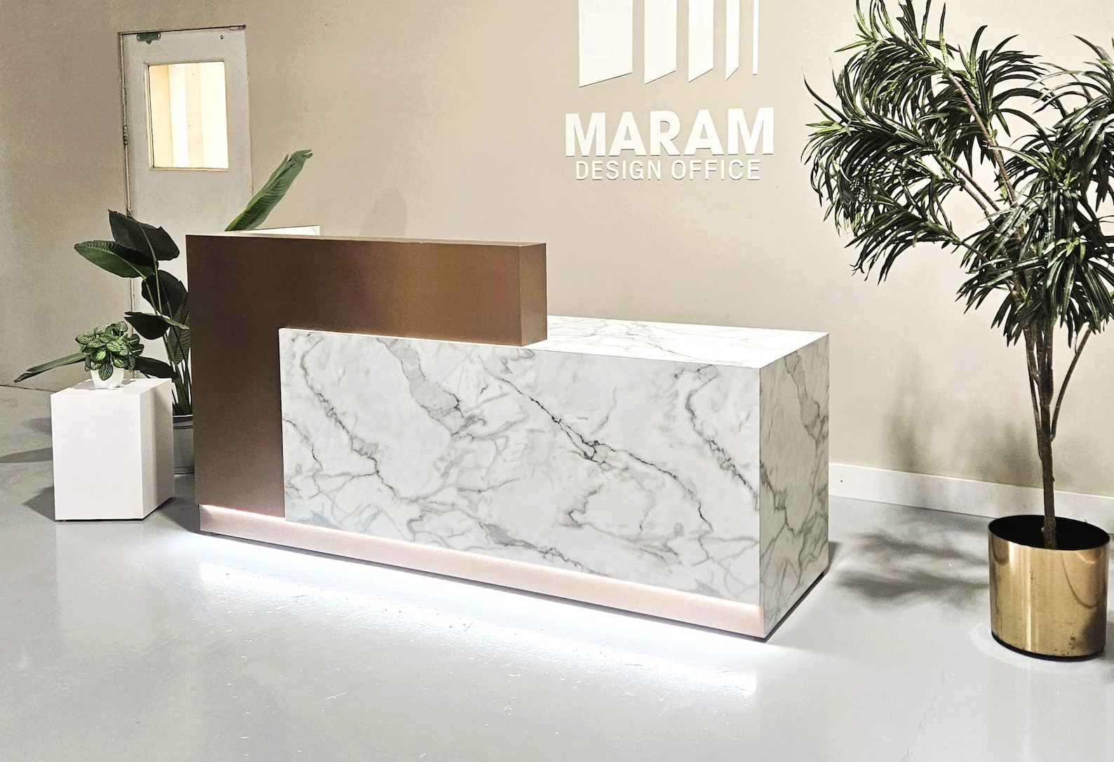 Count on MARAM DESIGN OFFICE to provide you with the ultimate reception desk for your space. Order now and experience the beauty and customization of the Jade Plus Reception Desk for yourself!